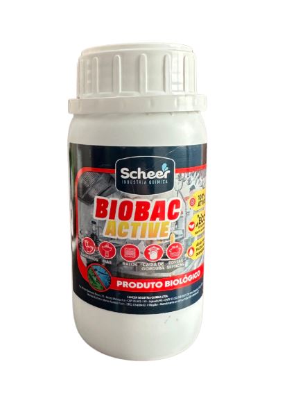 Biobac Active é um produto biológico ideal para limpeza de sanitários, pias, ralos, caixa de gordura e fossas sépticas.
