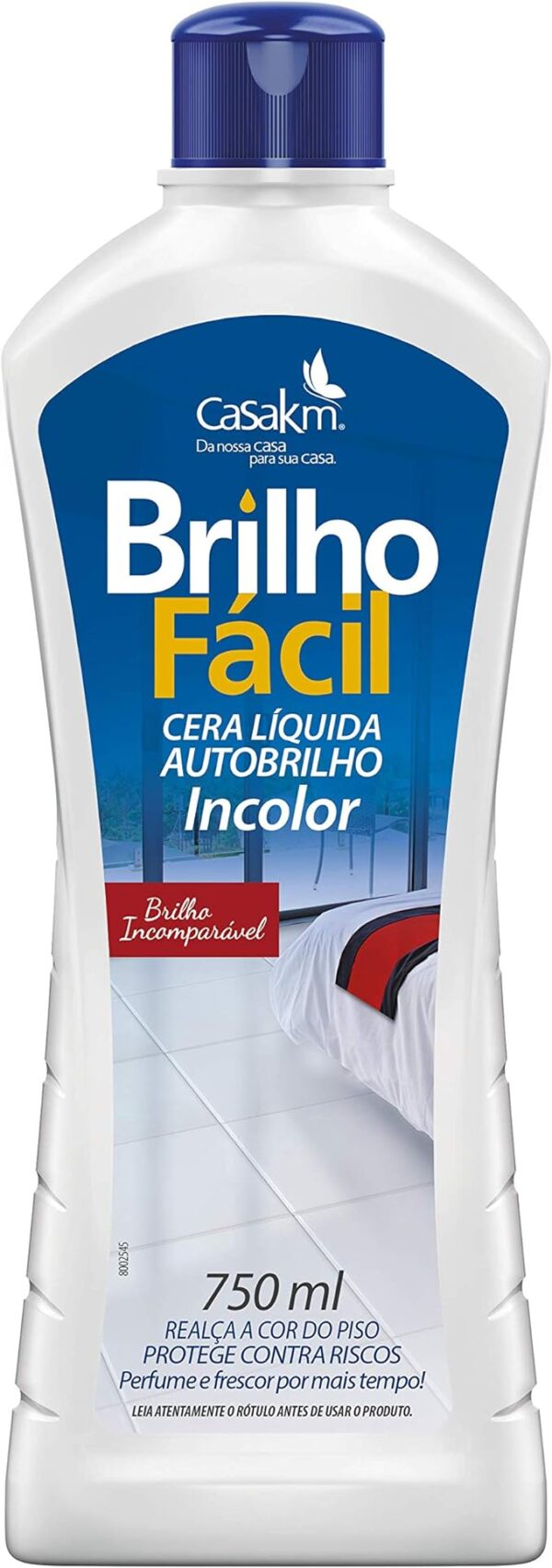 A cera líquida Brilho Fácil deixa o piso com aspecto espelhado e impecável, formando uma película especial, que reaviva cores, tem efeito antipó e protege contra riscos.