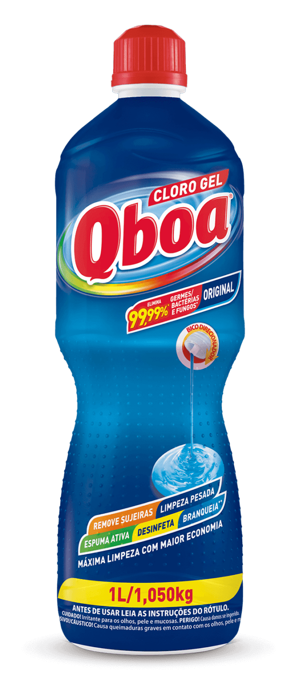 Isso é que eu chamo de eficiência! O novo Cloro Gel Qboa elimina 99,99% dos germes, bactérias, fungos e o novo vírus. Sua poderosa fórmula com cloro ativo limpa e desinfeta profundamente, garantindo proteção para a sua casa e saúde para a família. A diferença do gel é que ele permanece por mais tempo nas superfícies, criando uma camada de ação prolongada. E tudo com aquele cheirinho super de limpeza! A embalagem do novo Cloro Gel Qboa tem bico direcionador para o seu total controle na hora da aplicação, além da economia, pois evita o derramamento.