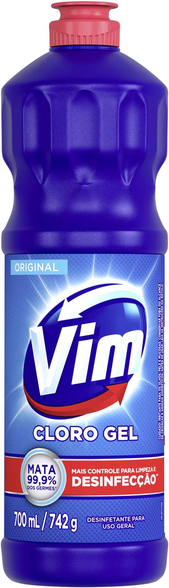 - O Desinfetante Vim Cloro Gel Original é para uso geral em toda a sua casa e possui poder de limpeza desengordurante, além de matar 99,9% dos germes