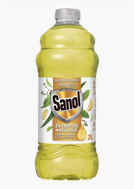 DESINFETANTE EXTRATOS NATURAIS CAPIM LIMÃO E FOLHAS VERDES SANOL 2 LITROS