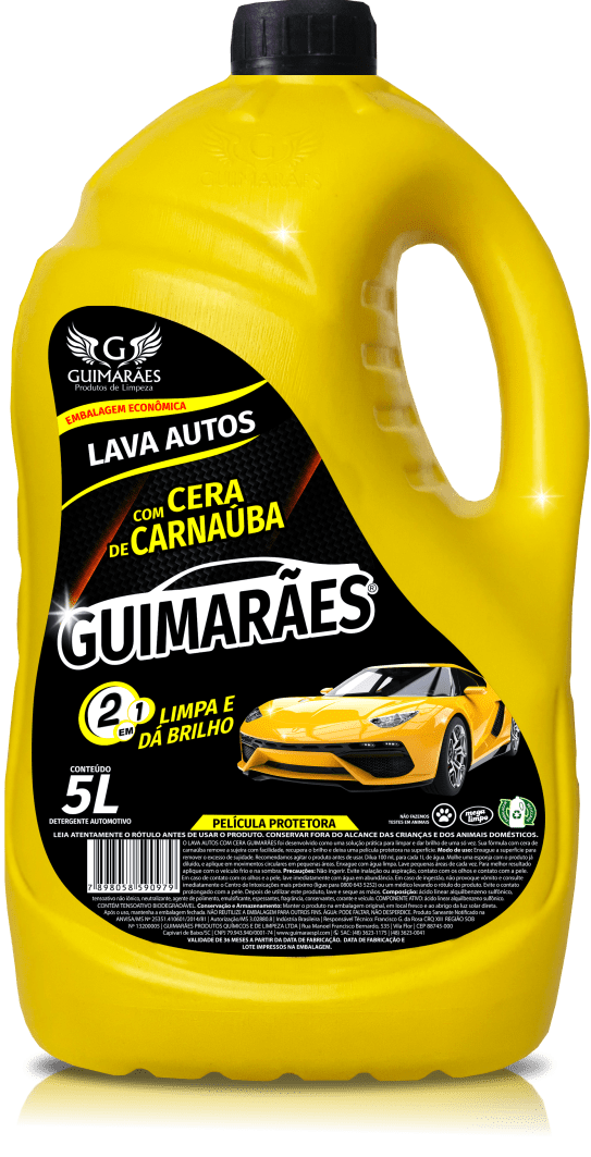 O LAVA AUTOS COM CERA GUIMARÃES foi desenvolvido como uma solução prática para limpar e dar brilho de uma só vez. Sua fórmula com cera de carnaúba remove a sujeira com facilidade, recupera o brilho e deixa uma película protetora na superfície.