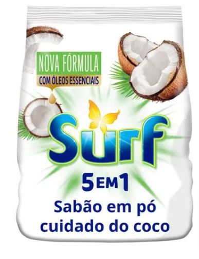 O Sabão em pó Surf 5 em 1 Cuidado do coco te dá muitos benefícios por menos! Em um único sabão em pó para lavar roupas você encontra poder de limpeza, fragrância intensa e duradoura, e bom custo-benefício, que alveja o branco, tira manchas e cuida da cor! Todos os benefícios a um preço acessível! Experimente a sensação de roupa recém-lavada e limpa com o Sabão em pó Surf 5 em 1 Cuidado do coco. Sua fórmula oferece a solução completa e foi desenhada para entregar tudo o que você espera de um sabão em pó em um produto fácil e simples de usar. A marca Surf não está aqui apenas para lavar roupas, mas sim para ajudar você a se sentir confiante e confortável com você mesma. Ajuste a dosagem: Surf 5 em 1 agora vem com a nova tecnologia de único enxágue que economiza água, é concentrado e rende muito! Economia de água para você e para o planeta! Com apenas 1/2 xícara de chá* você lava uma máquina cheia! Os produtos lava-roupas da Surf vêm em três formatos diferentes para você escolher. São eles: o sabão em pó nos tamanhos de 800 g, 1,6 kg e 2,2 kg, e também o sabão líquido com 3 L e 5 L. *Xícara de 240 ml