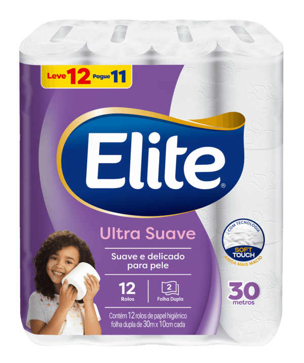 PAPEL HIGIÊNICO ELITE ULTRA SUAVE FOLHA DUPLA 30m (12 rolos)