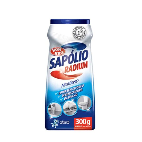 O Sapólio Radium em Pó possui alta abrasividade, e elimina as sujeiras que dão ainda mais trabalho, sendo utilizada aplicando-os diretamente na superfície, ou diluído em água.