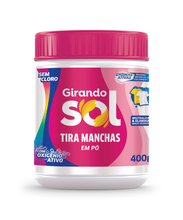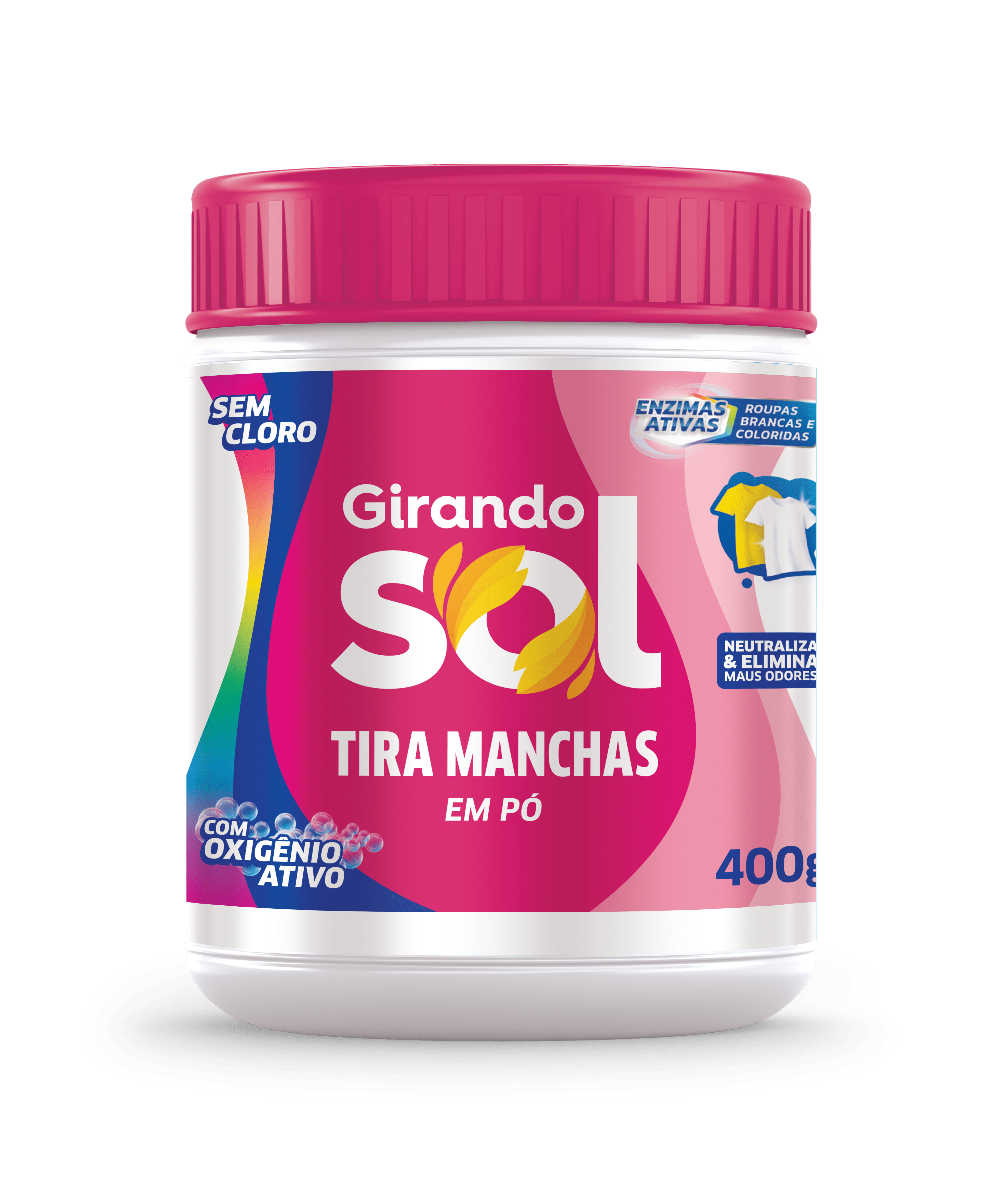 Se você busca por uma solução eficaz e delicada para eliminar manchas indesejadas das suas roupas, o Tira Manchas em Pó da Girando Sol é a escolha perfeita. Com uma fórmula inovadora sem cloro, enriquecida com oxigênio ativo e enzimas ativas, este produto de limpezaé desenvolvido para tirar manchas de roupas brancas e coloridas, garantindo resultados surpreendentes.